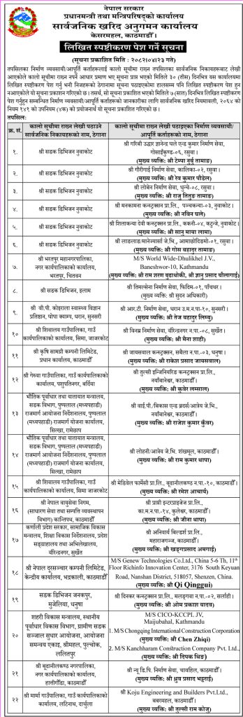 कार्यालयले आज एक सार्वजनिक सूचना जारी गर्दै ती कम्पनीहरूलाई कालोसूचीमा राख्न नपर्ने कुनै कारण भए ३० दिनभित्र स्पष्टीकरण पेश गर्न निर्देशन दिएको छ।